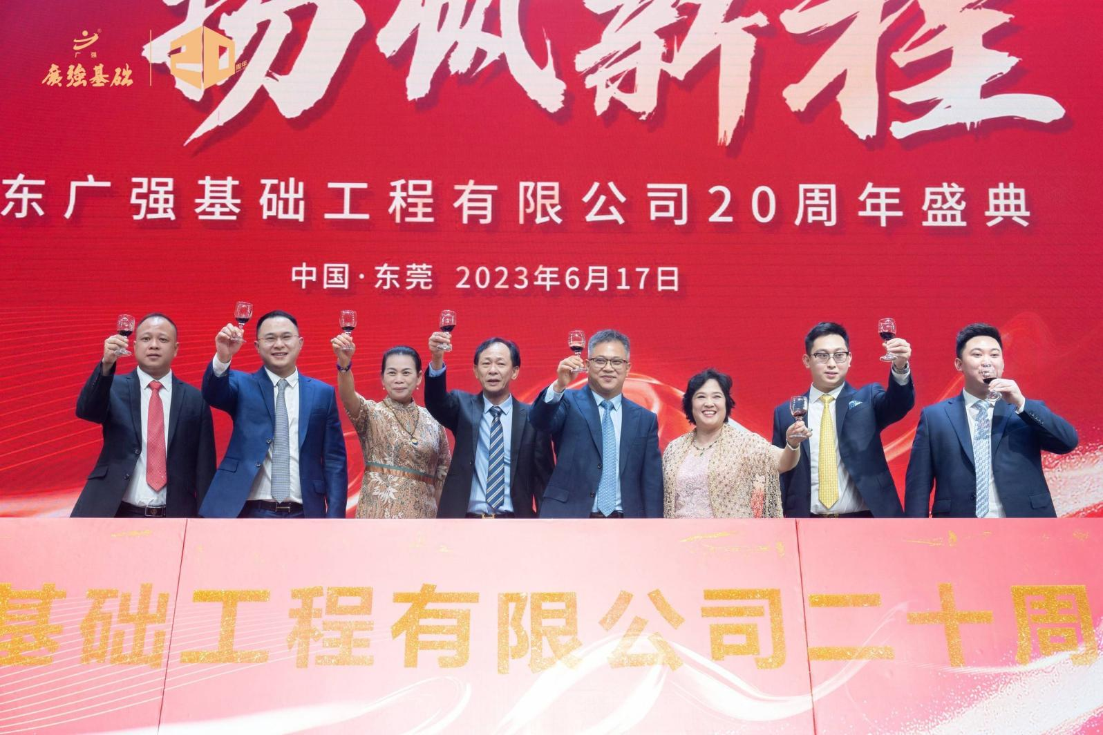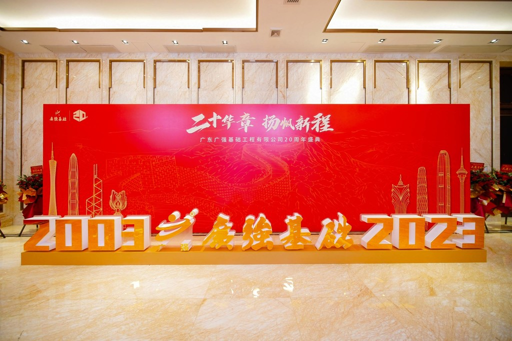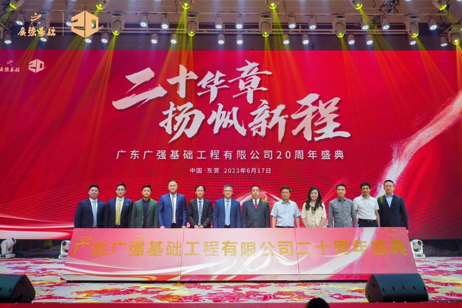 岁月如歌,风霜如画,二十年弹指一挥间,广东广强基础工程有限公司(下称“广强基础”)迎来了二十周岁生日,广强人在激烈的市场竞争中砥砺前行,经过了市场经济的重重洗礼,取得了累累硕果,为了庆祝这一特殊的日子,2023年6月17日18:30在东莞市南城区宏远酒店国际宴会厅举办了隆重的“生日”庆典。